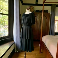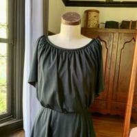 No Label, 1960's/1970's, Polyester/Rayon, Bat Sleeve, Zipper Back, Hook and Eye Top Closure, Tiered Skirt, Vintage Size 11/12