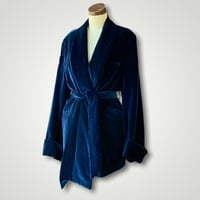 Brooks Brothers, Vintage 1960's, Midnight Blue, Velvet Smoking Jacket, Belted, One Lapel Pocket, Two Front Pockets, Open Style, Collared Neck, Cuffed Sleeve, Fully Lined, Size Large