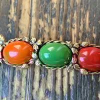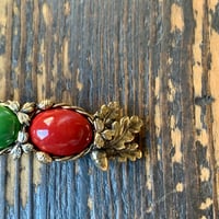Made in France, Three Plastic Beads (Tested Negative For Bakelite), Floral Pattern, Metal, Gold-Tone, Medium Weight