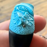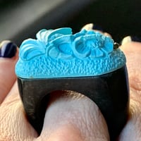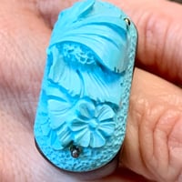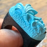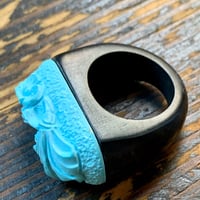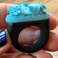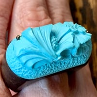 Simulated Turquoise Blue Floral Silver Wood Ring Size 9.5